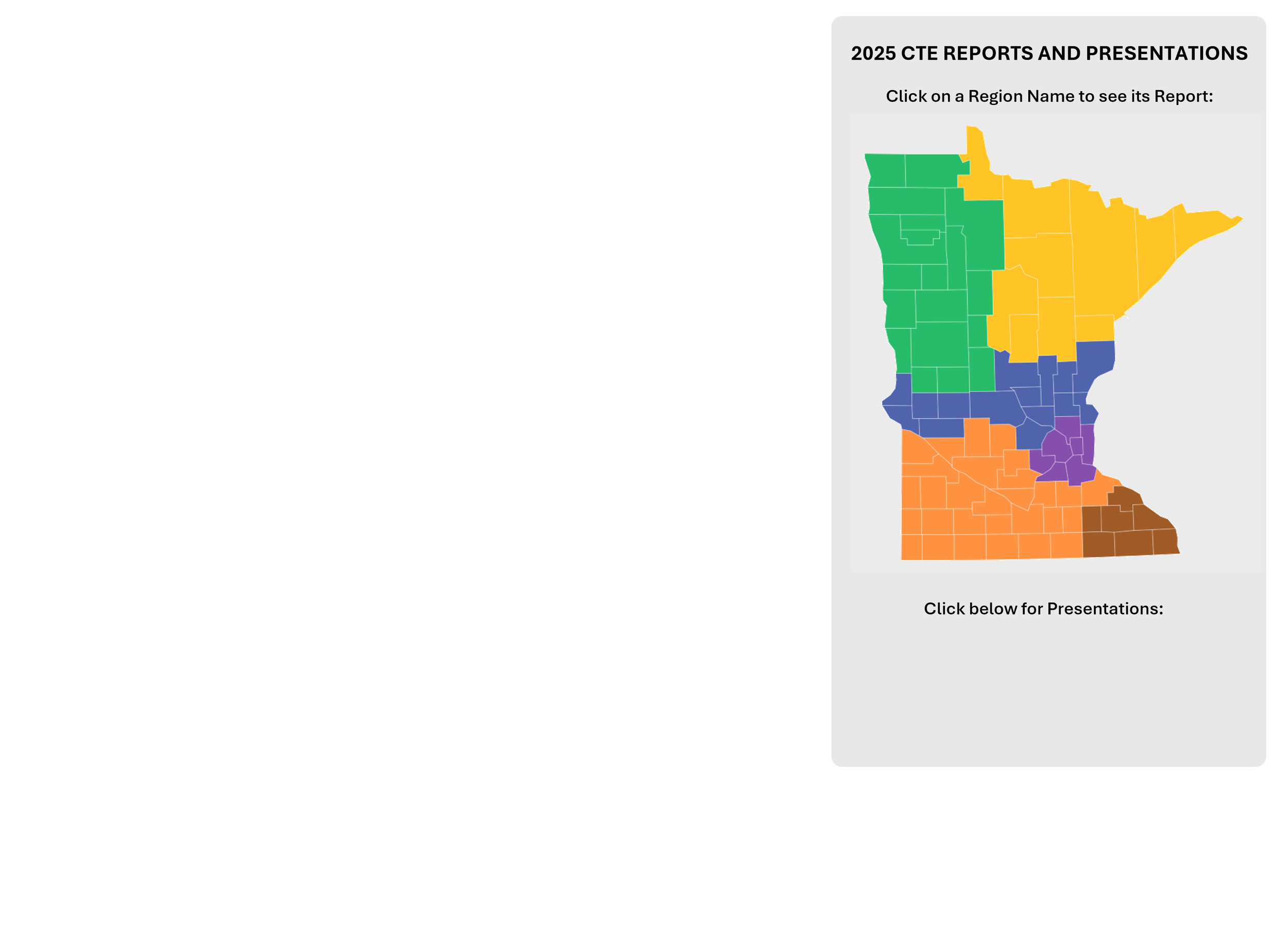 Our reports detail the current workforce landscape of Minnesota and the regional nuances of talent demand by career field. The content is intended to support Minnesota Perkins Consortia in navigating changes in their local labor market and guide their understanding of how these changes may impact enrollment, industry, career advancement, and the needed programs of study by region. Each report includes: